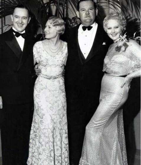 تصویری میبینید که در آن لورل و هاردی، بازیگران مشهور طنز همراه با همسرانشان دیده میشوند.
