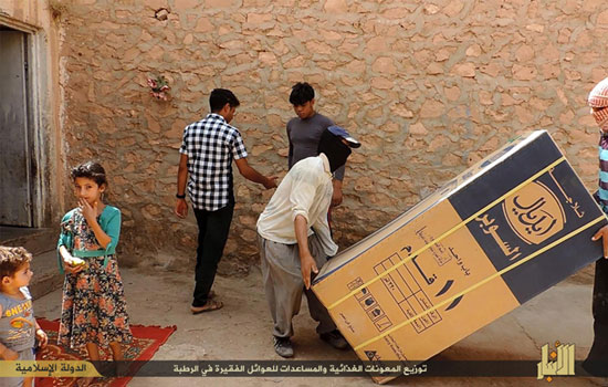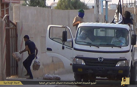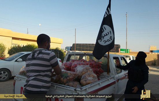 شبکه های اجتماعی و وب سایت های وابسته به داعش با انتشار تصاویری از توزیع آذوقه بین مردم الرطبه خبر دادند.