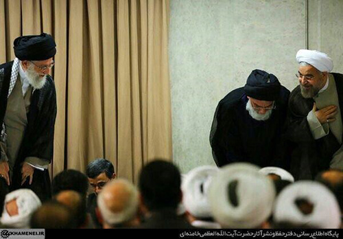 3. در چنین دیدارهایی نزدیکترین فرد به آقا معمولاً رئیس جمهوری فعلی قرار میگیرد نه رئیس جمهور قبلی